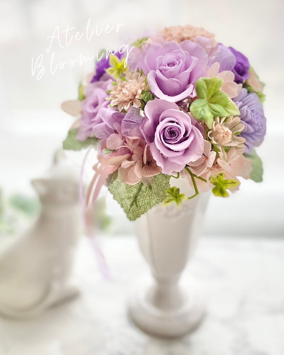 ■花材:プリザローズ アジサイ 小花リーフ(フェイク )自然素材ドライフラワー リボンなど