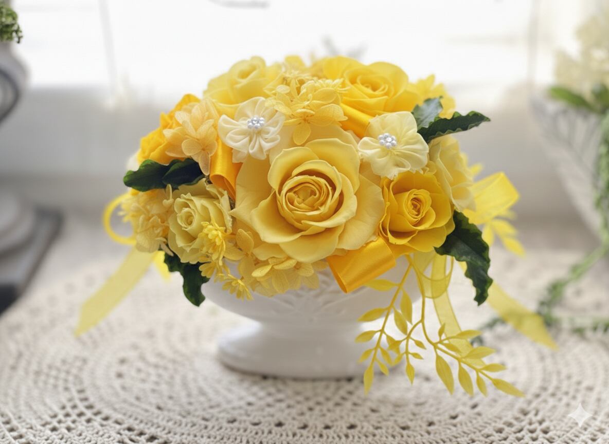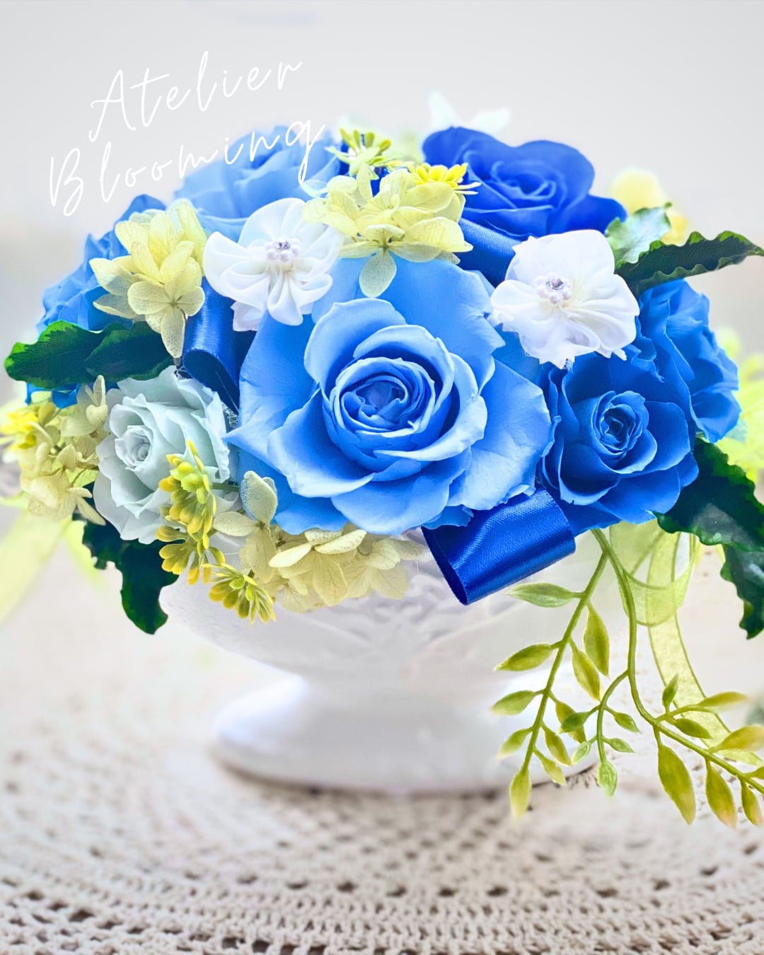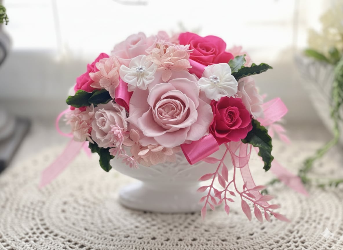 ■花材:プリザローズ プリザアジサイ 小花フェイク 自然素材ドライフラワー リボンなど