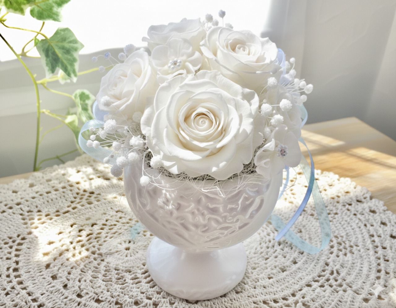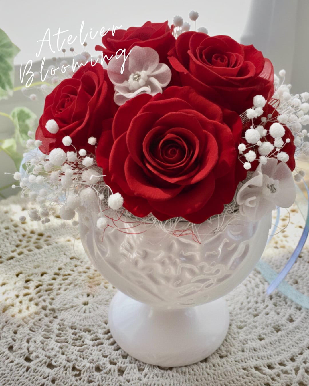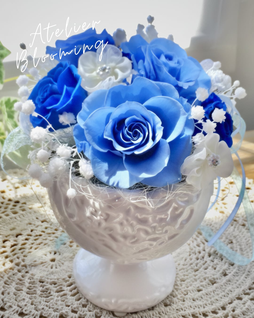 ■花材:プリザローズ プリザアジサイ 小花フェイク 自然素材ドライフラワー リボンなど