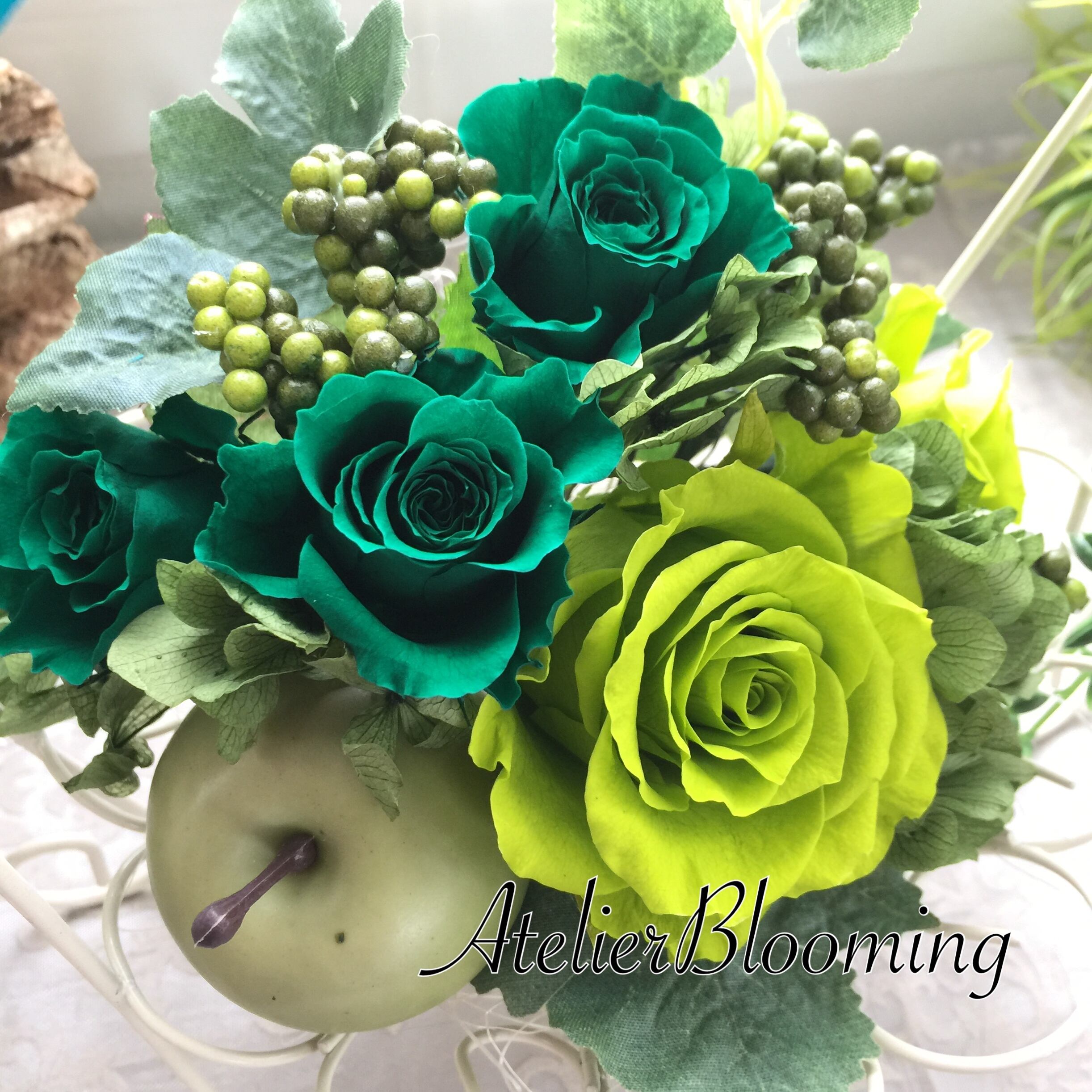 ※花色に合わせてリンゴの色はグリーンとレッドの2種類からチョイス致します。