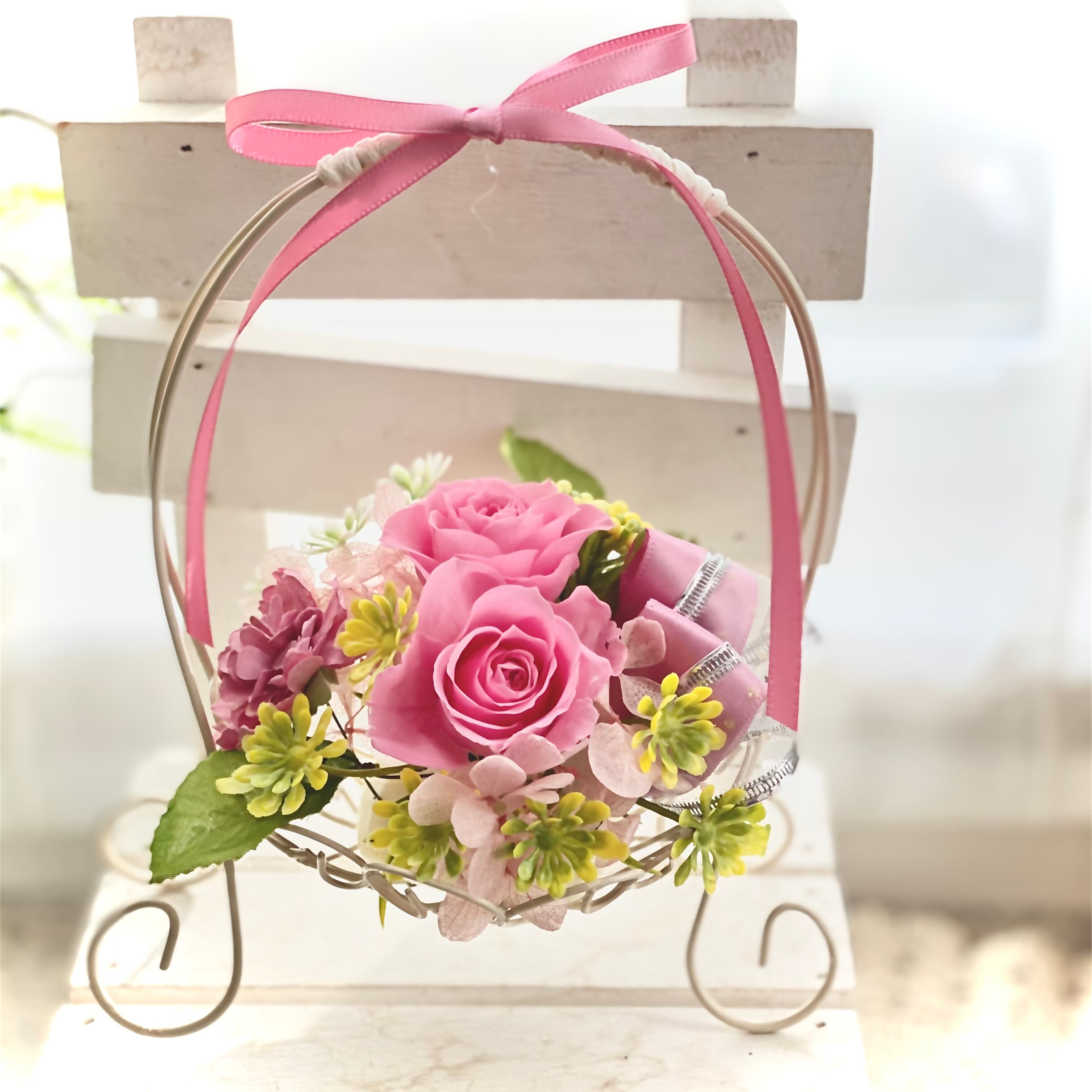 フラワーバスケット【プリザーブドフラワー】
