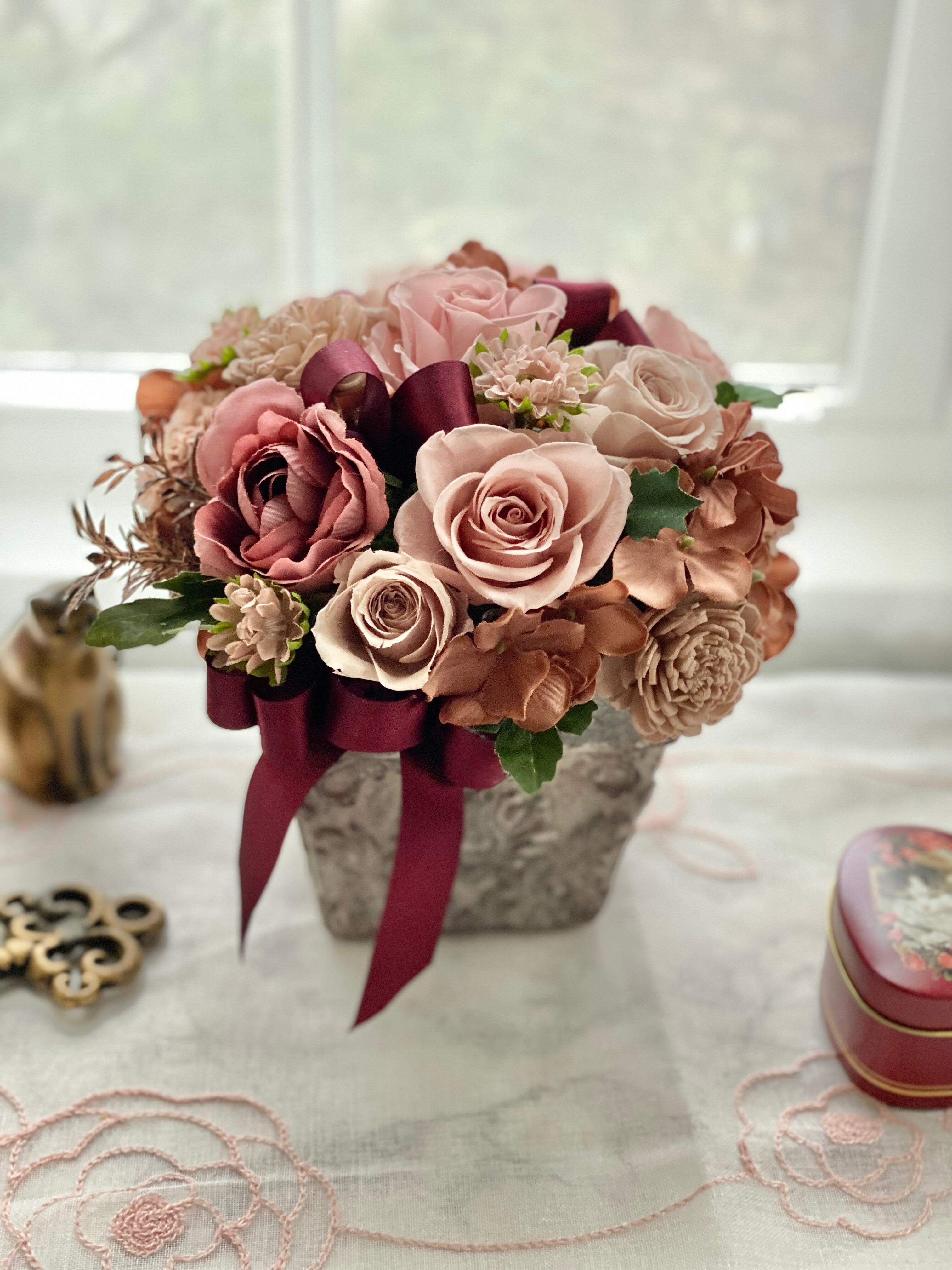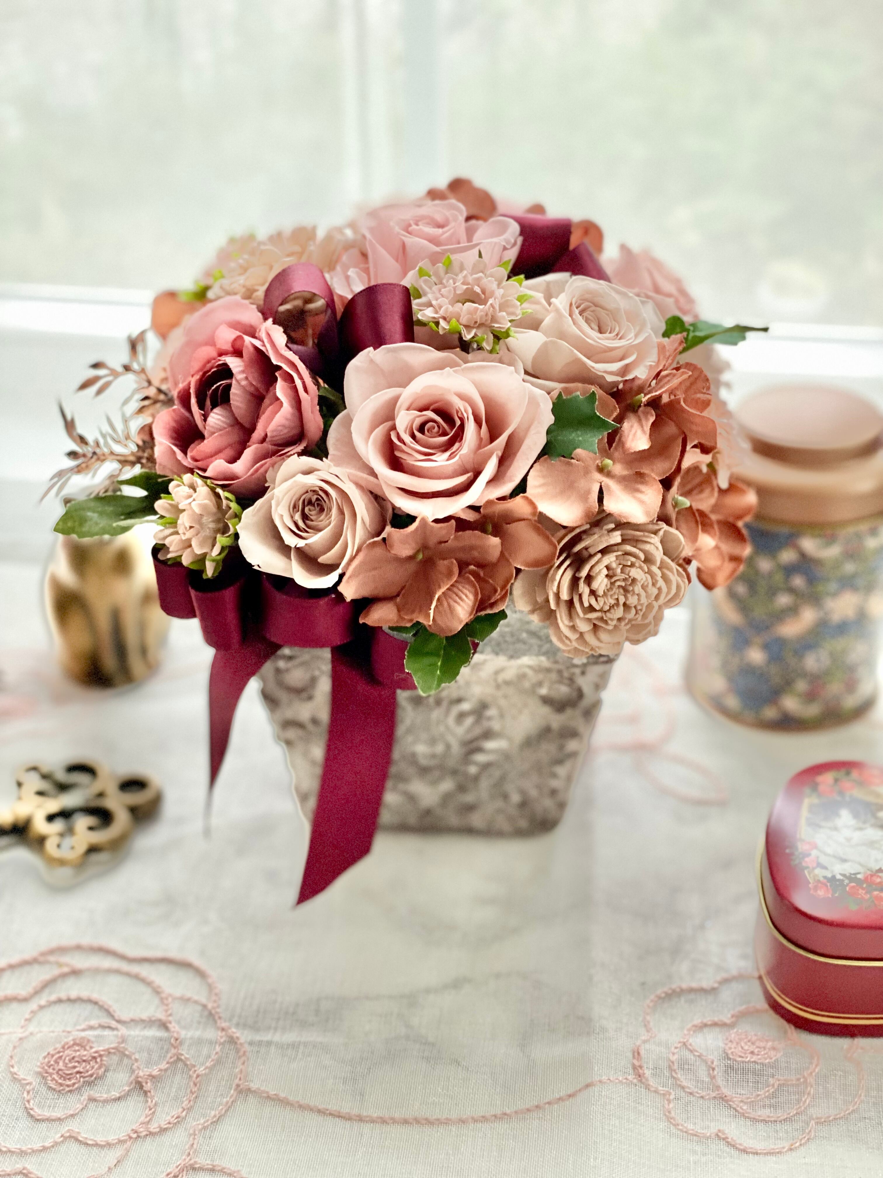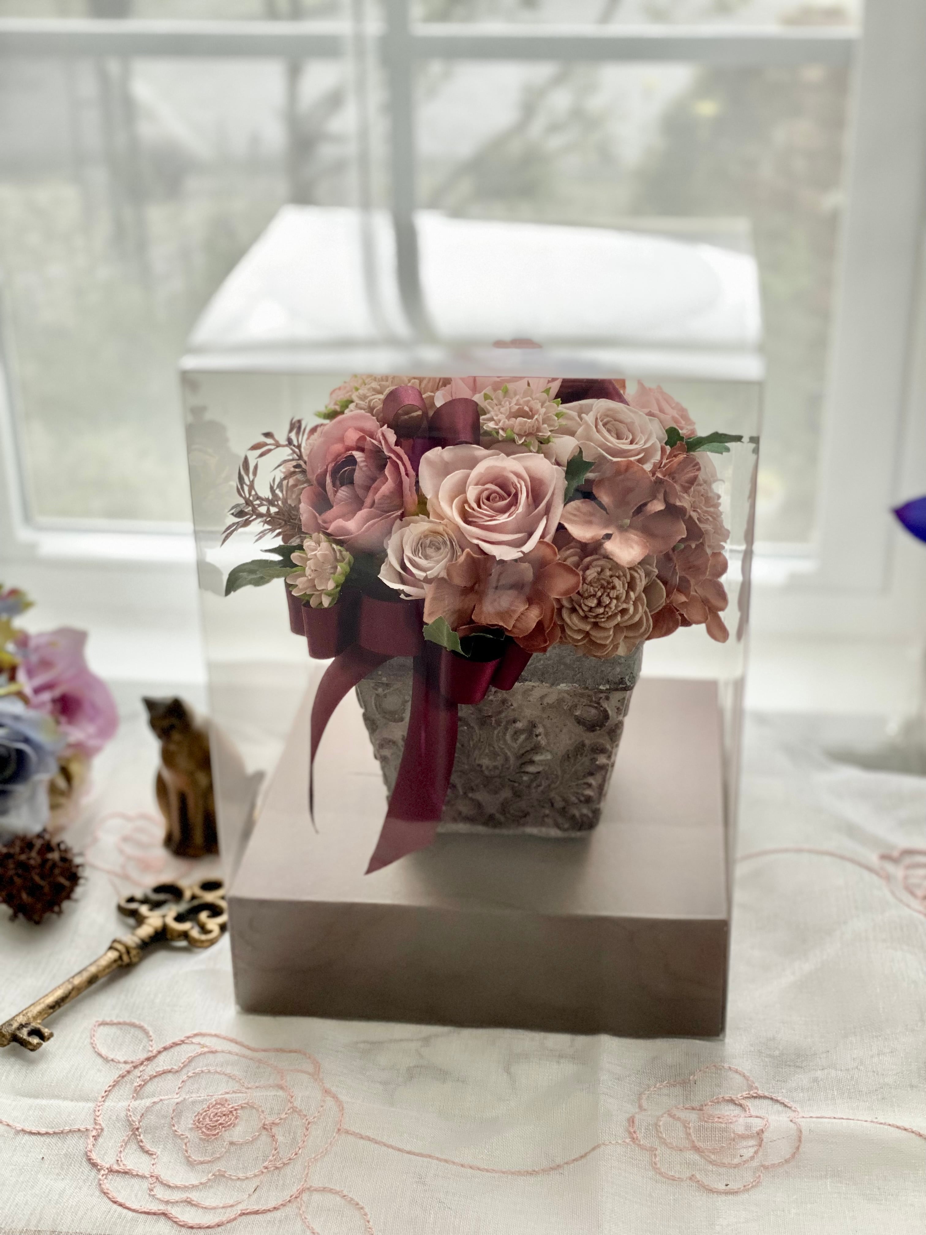 商品名:プリザーブドフラワー/ルイナススクエア-||-このプリザーブドフラワーは、一際目を引く美しさと色鮮やかさが特徴の逸品です。花々を永遠に楽しめるプリザーブドフラワーは、お部屋のインテリアに華やかさを添え、心を和ませてくれます。ルイナススクエアは、シンプルで洗練されたスクエア型のアレンジメントで、他のインテリアとも調和しやすく、お部屋の雰囲気を一層引き立ててくれることでしょう。-||-花の命は短いけれど、このプリザーブドフラワーは永遠に美しくあり続けます。心も癒される、疲れた時や喜びを分かち合いたい時にそっと寄り添ってくれるルイナススクエア。贈り物にも最適です。日々の生活に彩りを与え、幸せなひとときを演出してくれることでしょう。-||-直射日光を避け、湿気のない涼しい場所で保管してください。
